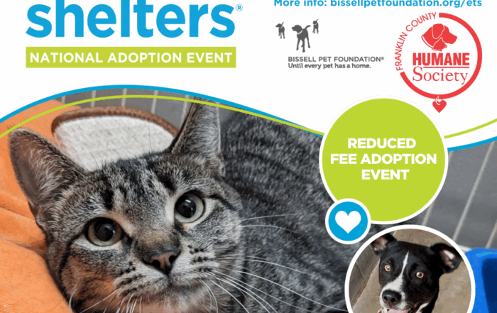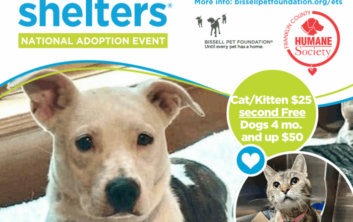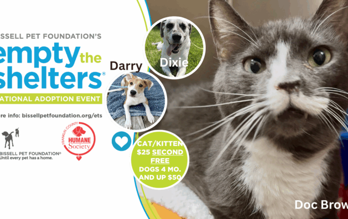 Franklin County Humane Society is excited to join BISSELL Pet Foundation’s Empty the Shelters, a nationwide adoption event helping pets find loving homes. From October 1–15, 2025,